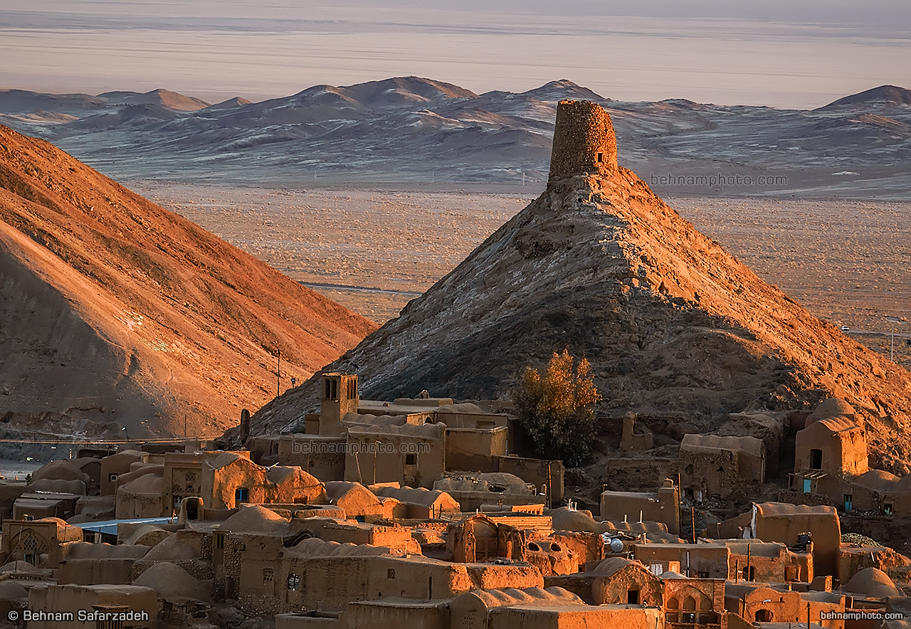 The city is surrounded by ruins of an old wall and three watchtowers, which were built about 100 years ago to keep Hossein Kashi and his bandit gang out. Anarak's climate is a typical desert climate, little rainfall, hot dry summer days and cool nights. Most of the old homes are adobe and have a courtyard; people move from south to north of the courtyard from winter to summer.